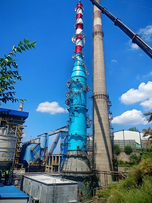 由我公司中标承建的山西***循环流化床锅炉新建湿法脱硫系统工程,80米烟塔合一脱硫塔于8月19日封顶。正在进行工艺管道预制安装,塔内防腐施工,电气安装等施工。